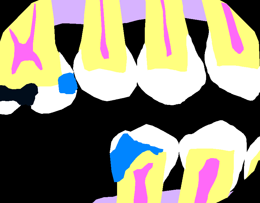 These masks are typically color-coded or stored as grayscale images with predefined values (e.g., 0 for background, 1 for enamel, 2 for pulp, etc.).